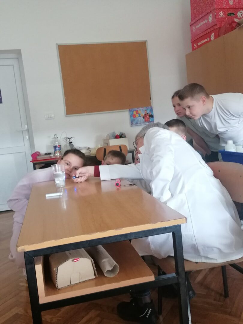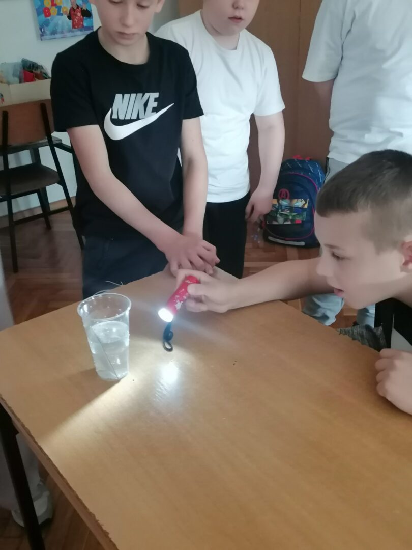 Radionica je provedena 20. 3. 2026. godine, a učenici su uživali u raznim pokusima : gumeno jaje, duh u boci, prelamanje svjetlosti i dr.