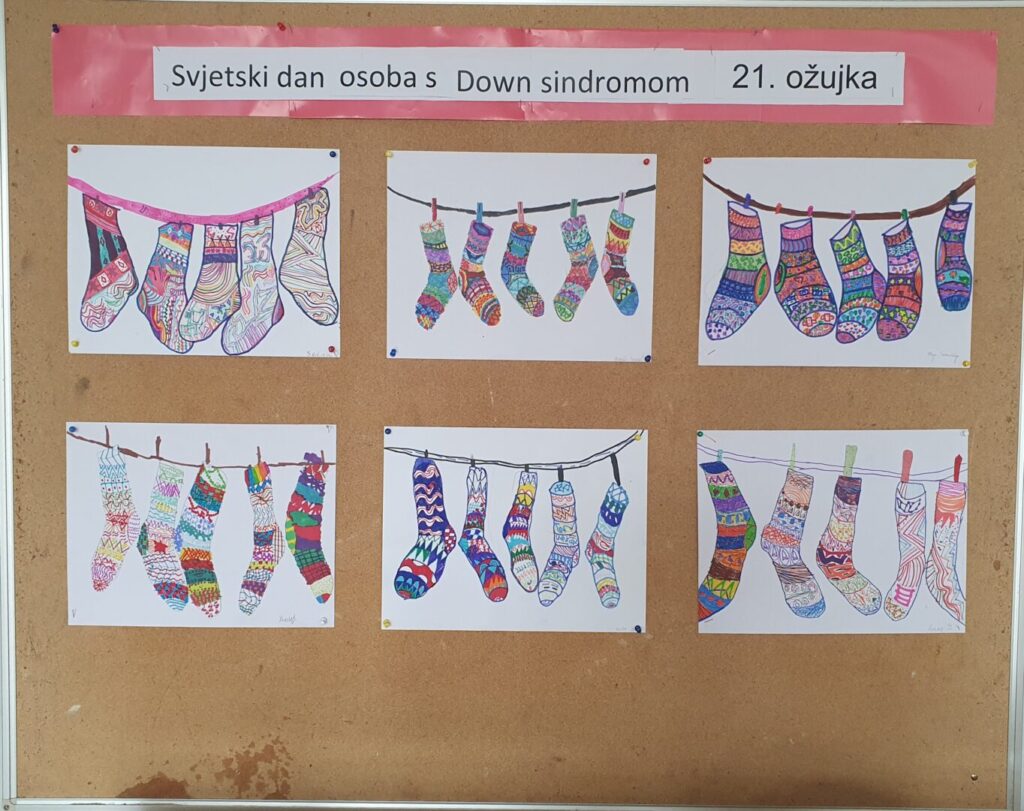 Povodom Svjetskog dana osoba s Down sindromom, koji se obilježava 21. ožujka, u našoj je školi postavljena prigodna izložba radova mladih zadrugara Učeničke zadruge „Jabuka“. Kroz edukativne aktivnosti, učenici su naučili važnu simboliku ovog datuma: Zašto baš 21. 3.? Taj datum predstavlja tri kromosoma na 21. paru, što je specifičnost osoba s ovim sindromom. Zašto šarene čarape? One su simbol podrške i prihvaćanja različitosti, jer su upravo razlike te koje nas spajaju. Nakon razgovora, učenici su vješto nacrtali vesele, šarene čarape koje sada krase naš školski pano.